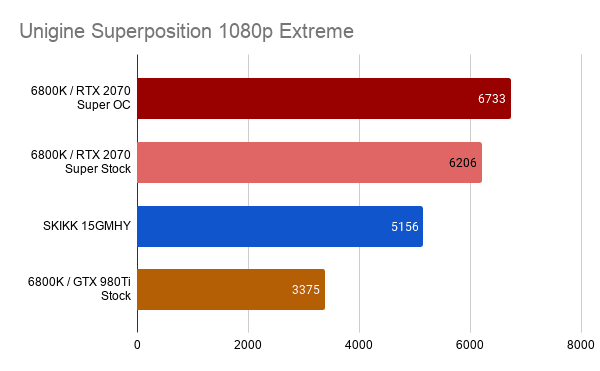 Ik had nog een resultaat van de 6800K PC met een oude GTX 980Ti GPU beschikbaar die ook in deze vergelijking zichtbaar is. Hierin is duidelijk zichtbaar wat een enorme voortgang gaming laptops hebben gemaakt.
