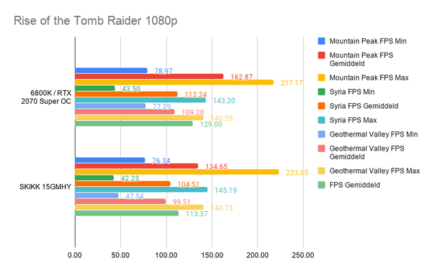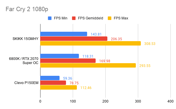 Gezien de resultaten is er eigenlijk geen vergelijking te maken tussen de SKIKK 15GMHY en de oudere Clevo P150EM en de Macbook Pro 15. Het is duidelijk dat de Macbook Pro niet is bedoeld om mee te gamen.