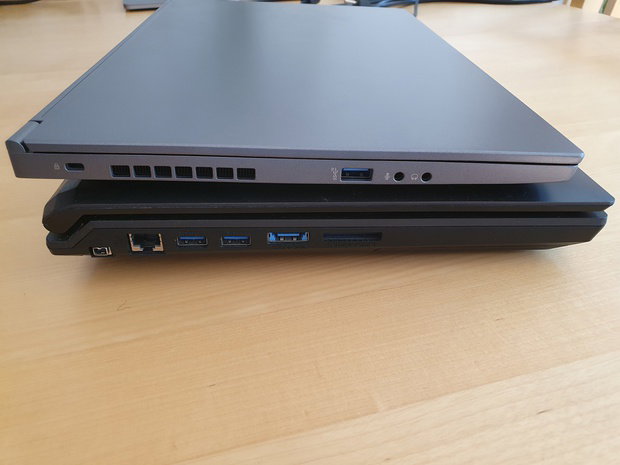 De laptop is een stuk dunner dan de dikke gaming laptops vanouds, zoals mijn Clevo P150EM.