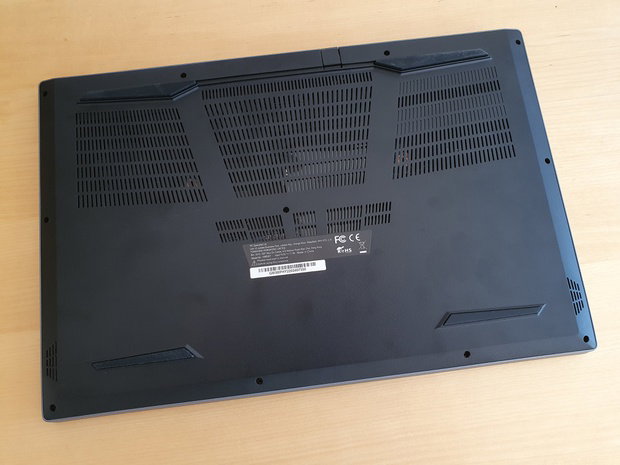 De onderzijde van de laptop is voorzien van veel ventilatieroosters, dit is een laptop die op harde ondergrond gebruikt dient te worden.