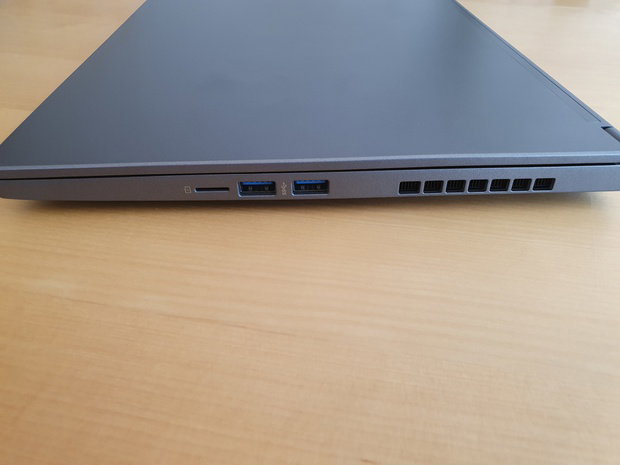 Aan de rechterzijde van het chassis vinden we 2 USB 3.2 Gen 1 5Gb/s poorten en een micro-SD kaartlezer.