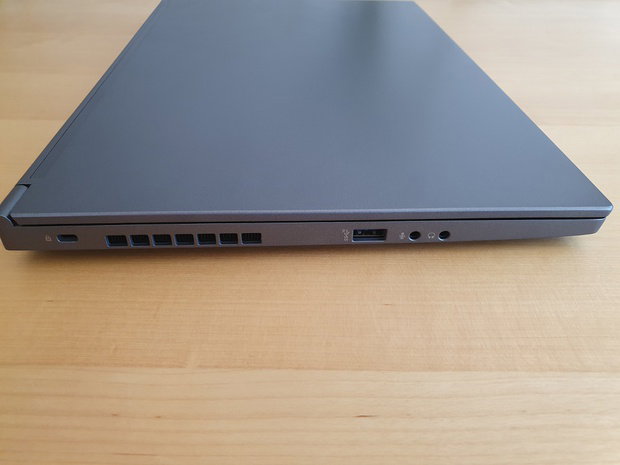 Aan de linkerkant van het chassis vinden we een USB 3.2 Gen 2 10Gb/s poort en 3.5mm headset en microfoon aansluitingen.