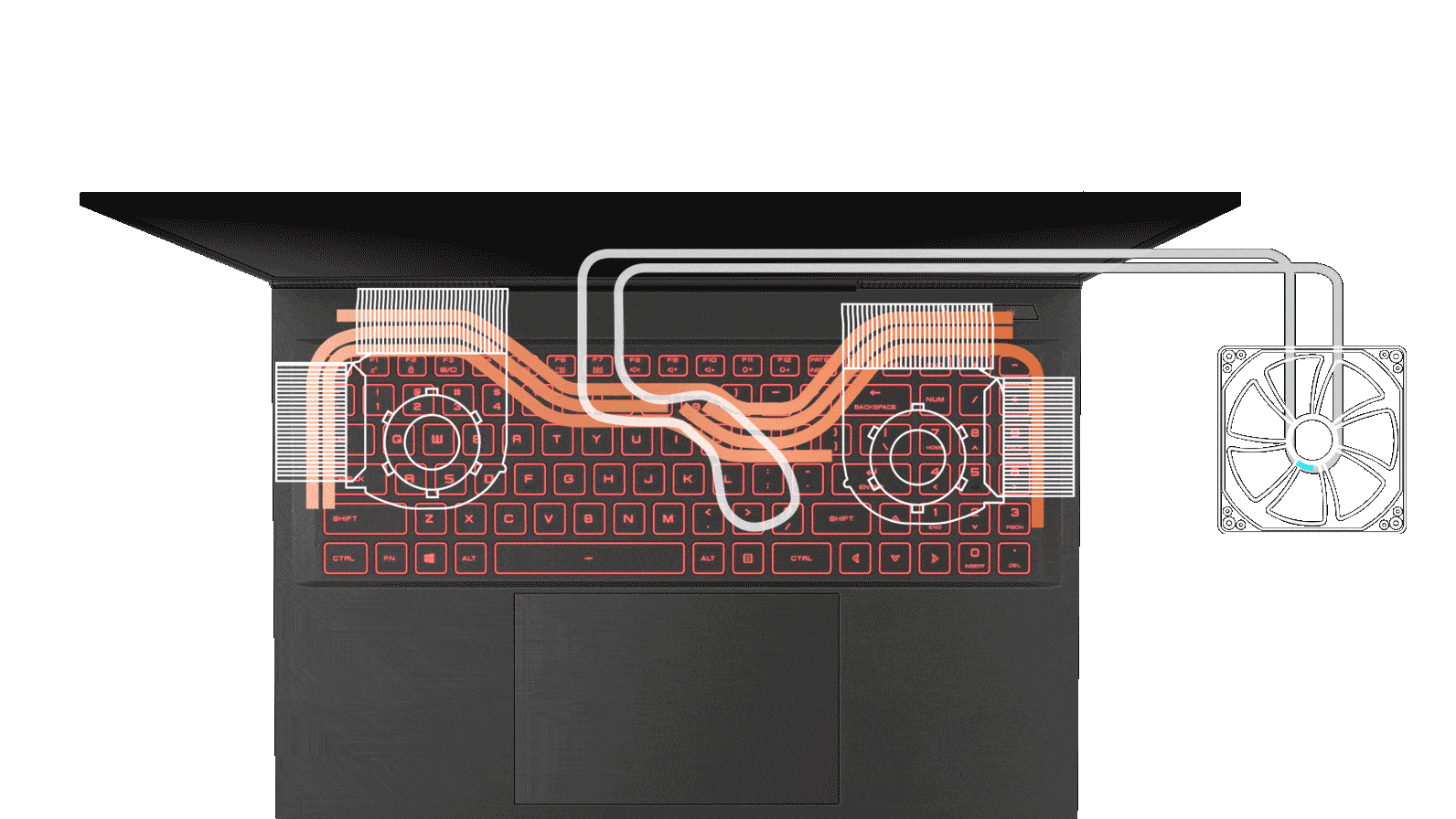 El resultado es excepcional, al utilizar SKIKK Kyla, las temperaturas del procesador y de la tarjeta gráfica bajan unos 20° grados centígrados. Y esto mientras los ventiladores de la computadora portátil solo funcionan al 50 por ciento de su velocidad máxima. Lo que beneficia la longevidad y la fuerza absoluta. Incluso bajo cargas muy pesadas de juego o renderizado, el nivel de ruido de la computadora portátil no supera los 39 decibelios.